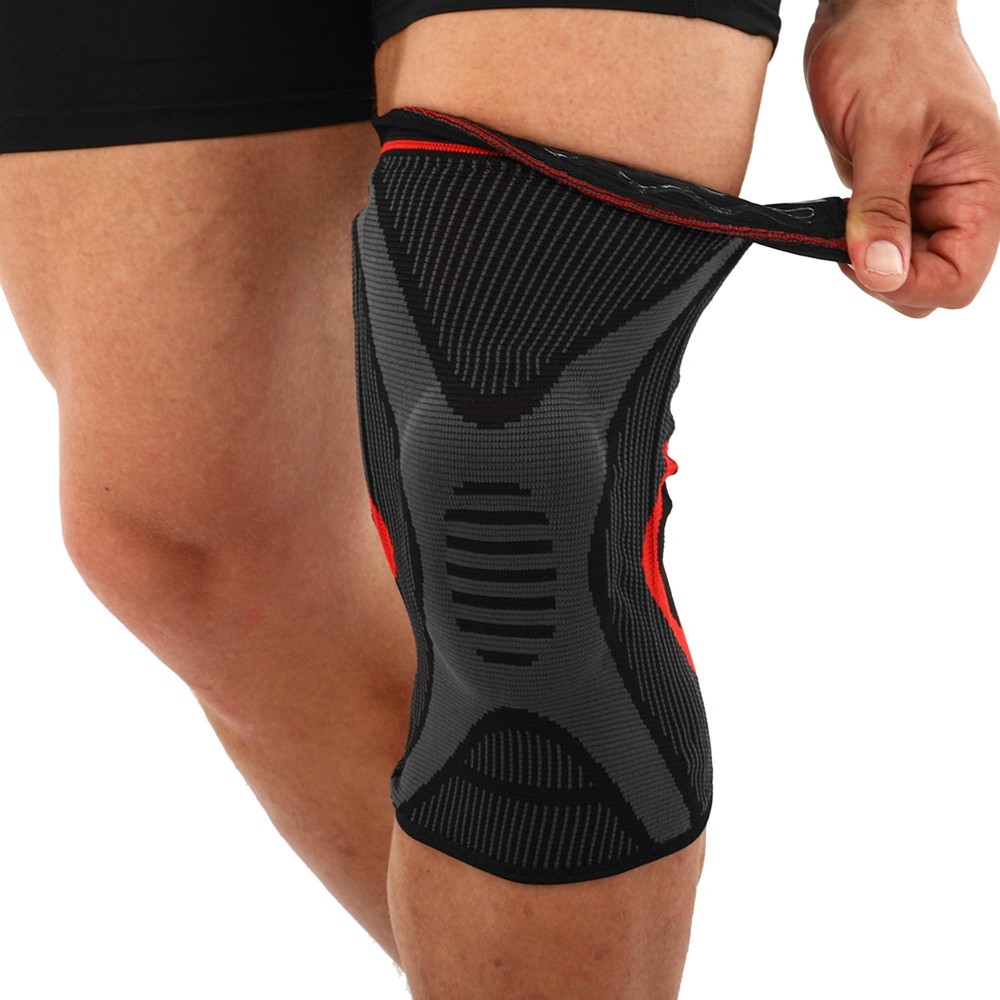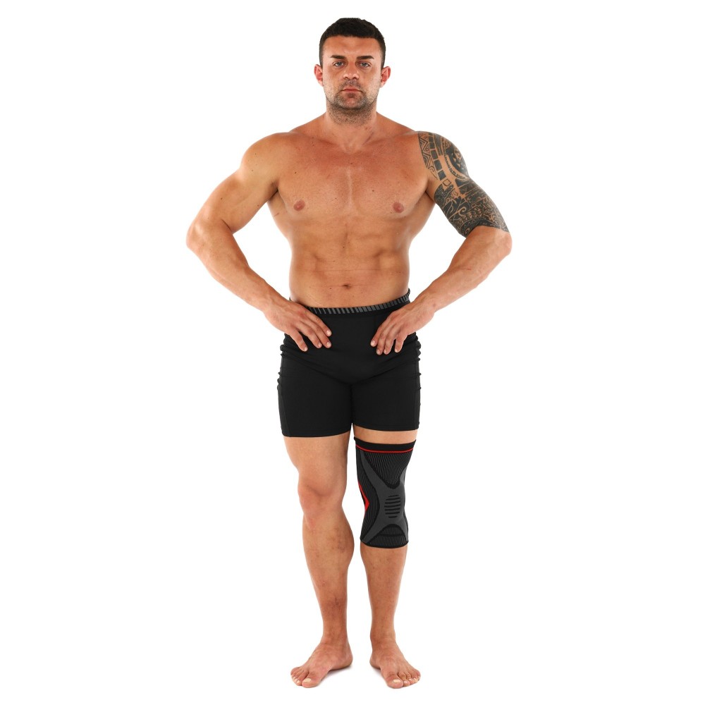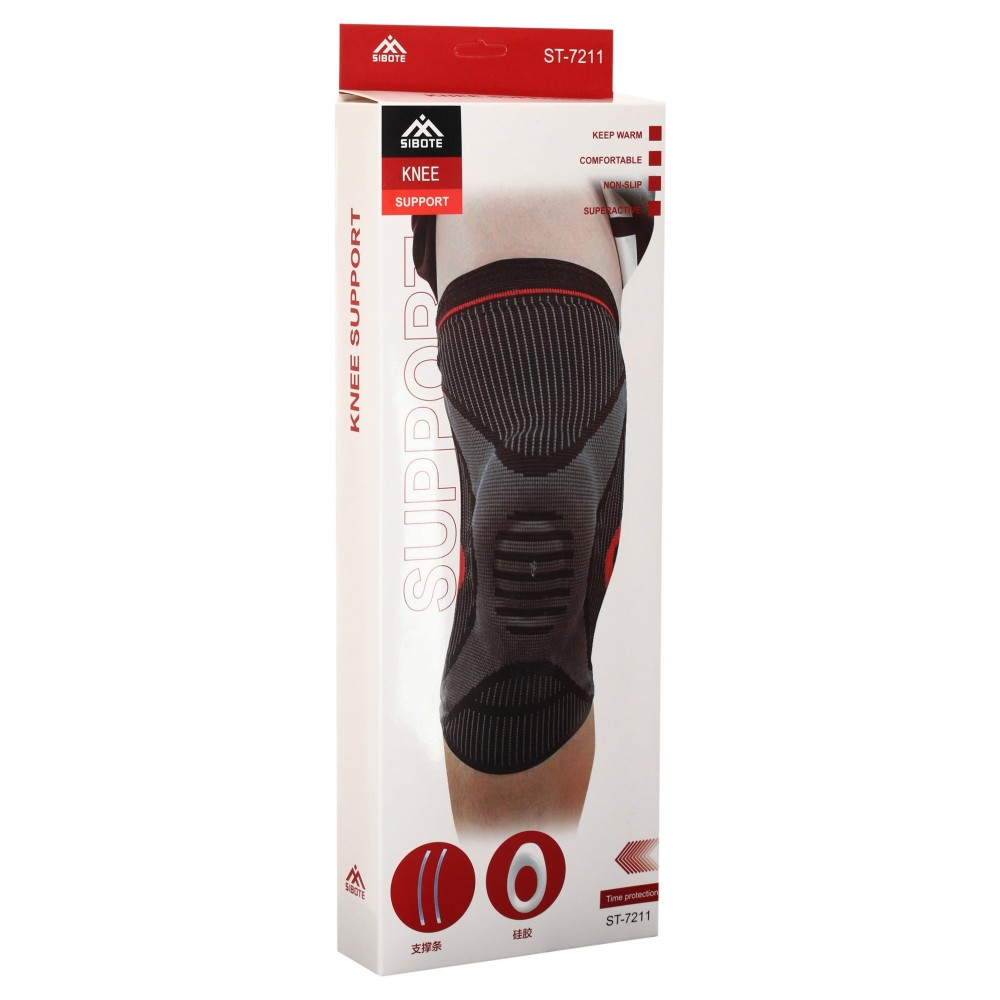 Наколенник, со, спиральными, ребрами, жесткости, силиконовым, кольцом, SIBOTE, ST-7211, M-XL, 1шт, черный-серый