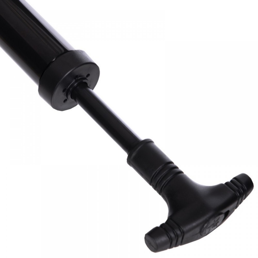 Корпус насоса изготовлен из высококачественного алюминиевого сплава, сочетающего в себе лёгкость и прочность. Он оснащён системой клапанов, которая и обеспечивает нагнетание воздуха при движении поршня вперёд-назад. В свою очередь поршень, посредством металлического штока соединён с пластиковой рукоятью, имеющей удобную для эксплуатации Т-образную форму. В комплекте также идёт шланг в защитной оплётке, изготовленный из высококачественной резины, и набор из 4-х стандартных игл из никелированной стали промышленного класса, предназначенных для накачивания мячей.