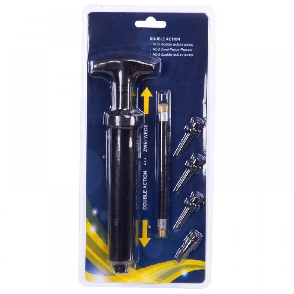 Этот насос предназначен для накачивания мячей, которые используются в таких видах спорта как футбол, баскетбол, волейбол, регби и многих других. В отличие от традиционных насосов в этом поршень нагнетает воздух при движении и вперёд, и назад, соответственно, затрачивается в два раза меньше времени на накачивание. При этом не нужно прилагать значительных усилий, так что справиться с задачей сможет даже ребёнок. Насос имеет небольшие габариты и легко поместится в сумку или рюкзак средних размеров.
