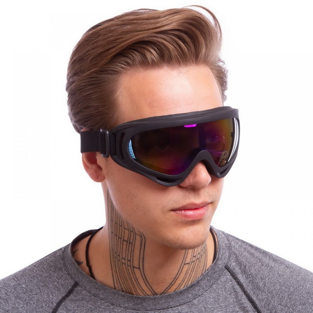 Отменную защиту от солнца обеспечивает оправа, которая плотно прилегает к лицу. Мягкий материал на оправе не надавливает кожу. Очки фиксируются на голове с помощью эластичной ленты. Длина ленты регулируется.