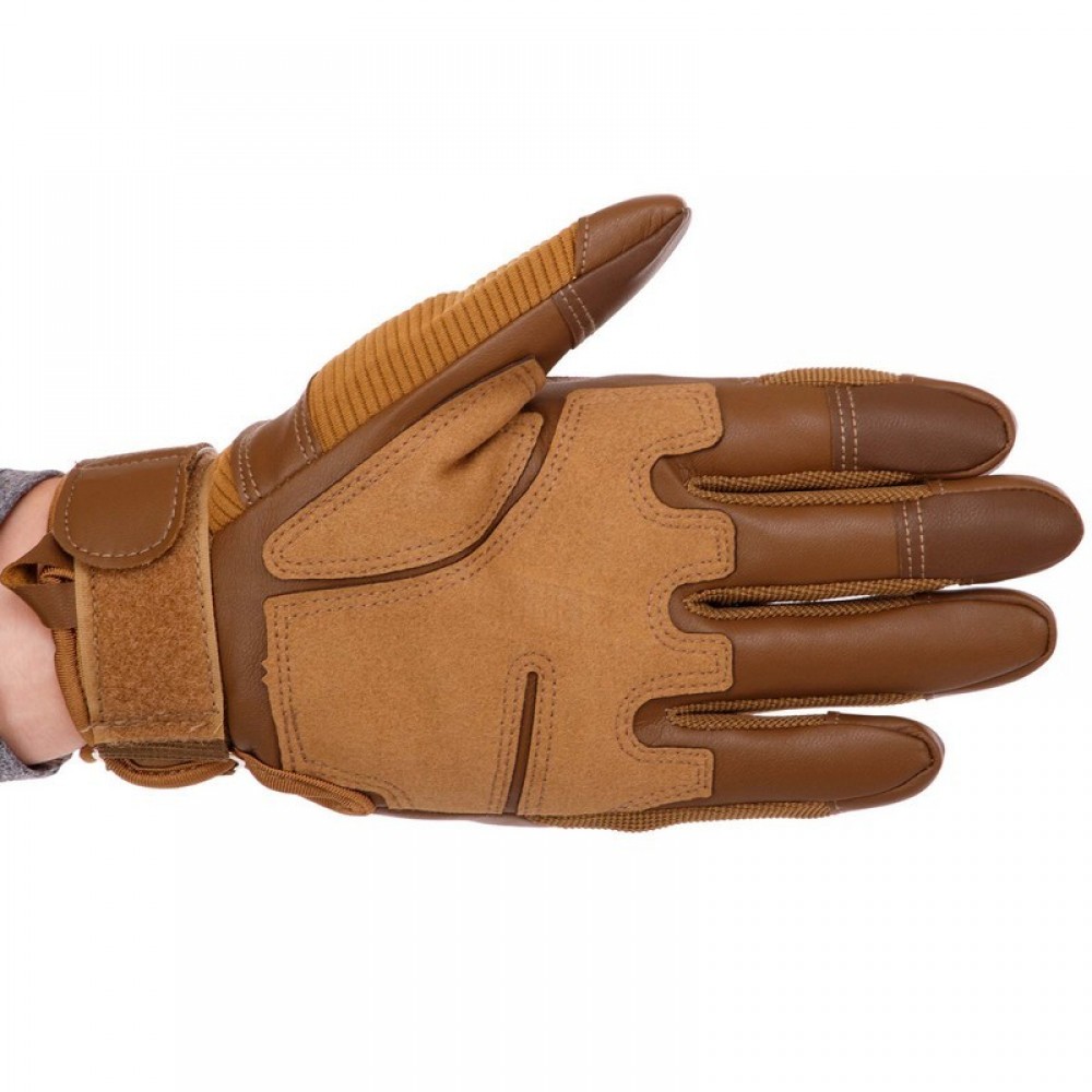Тактические перчатки изготовлены из искуственной кожи и полиэстера. Перчатки полностью закрывают пальцы.