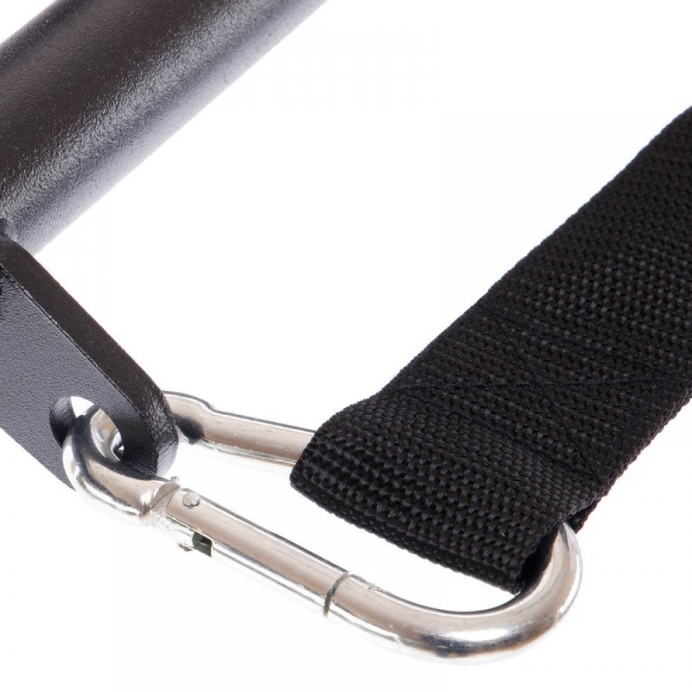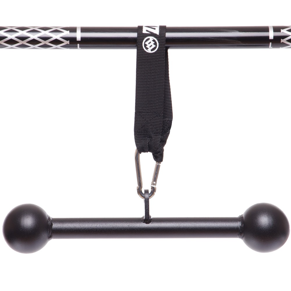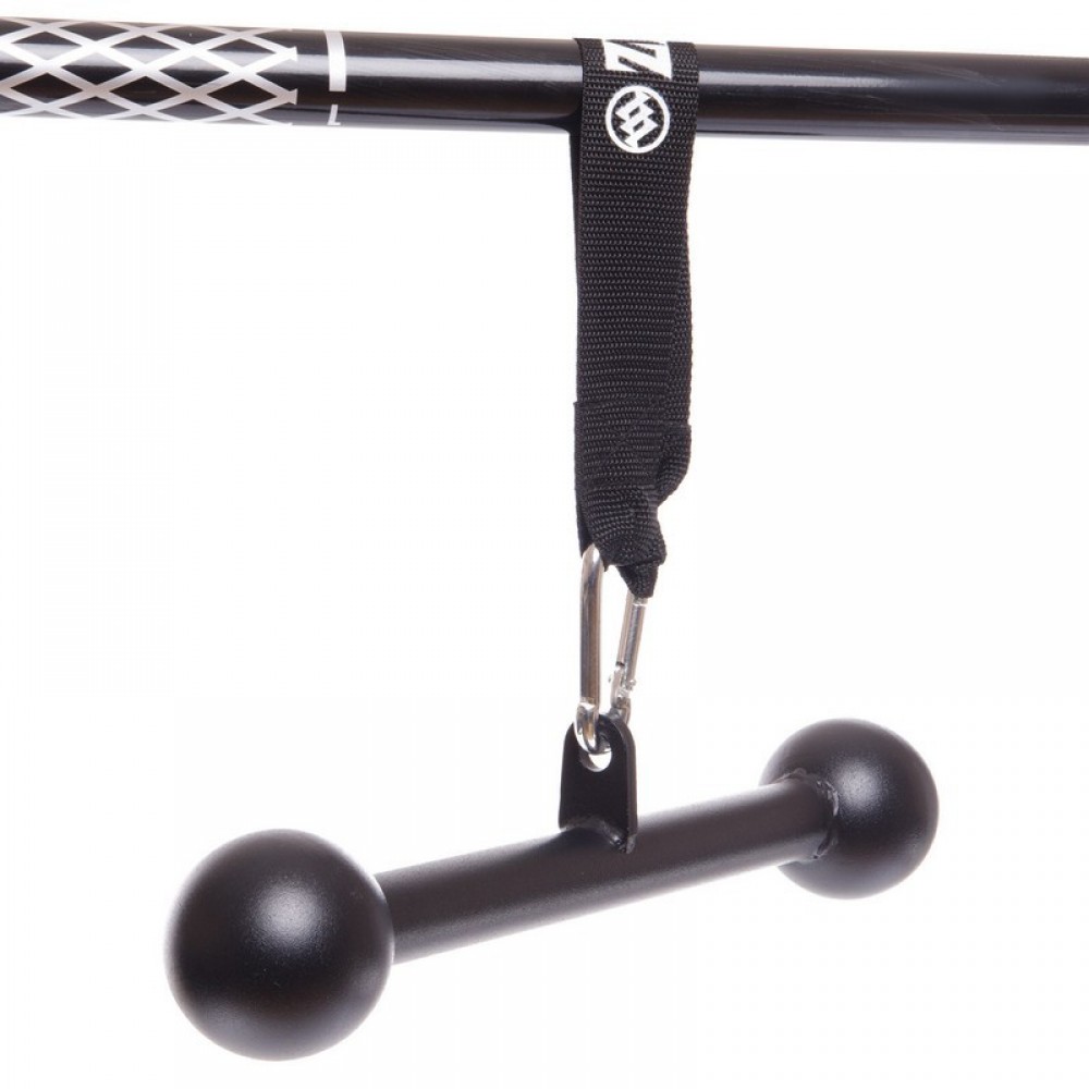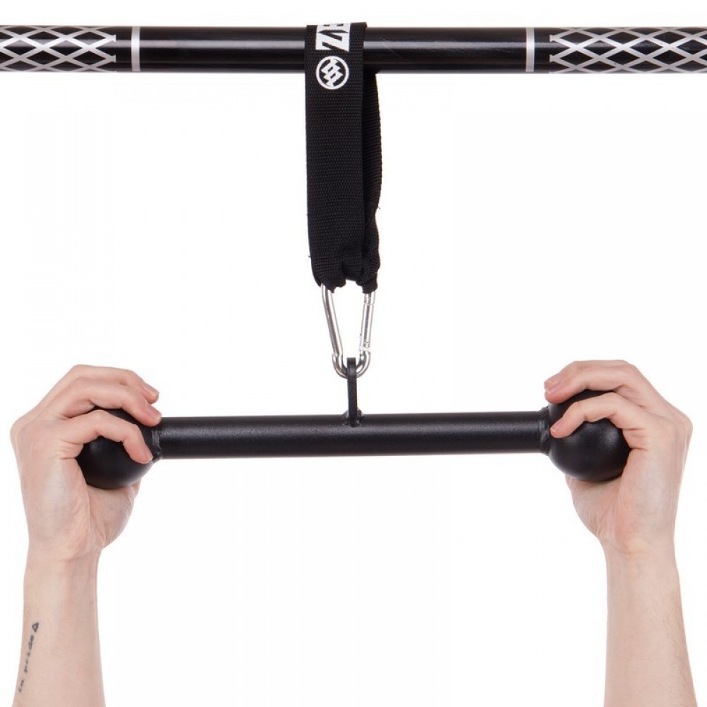 Конструкция комплектуется лямкой, с помощью которой можно ее повесить на обычную перекладину. Подвес подходит для подтягиваний узким хватом. По краям подвеса расположены сферы, на которых тоже можно подтягиваться.