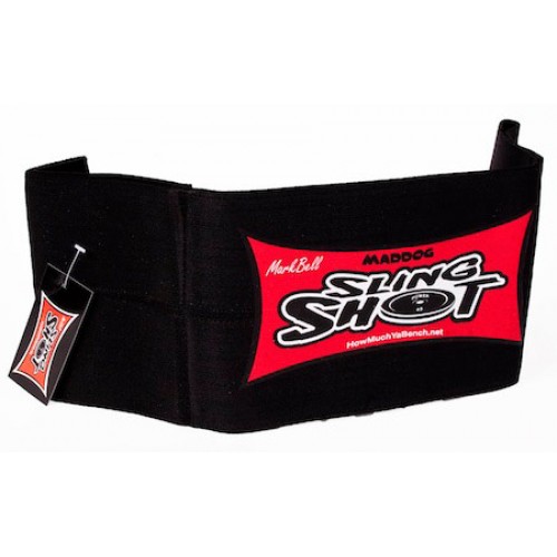 Слинг Шот был изобретен, запатентован и выпущен в продажу американским рестлером (в прошлом) и пауэрлифтером Марком Беллом (лучшая сумма 1116 кг), хозяином довольно известного клуба «Team Super Training». Задачей Слинг Шота является поддержание плечевого пояса при выполнении таких упражнений как жим штанги лёжа, жим гантелей, отжиманий от брусьев и от пола. Представляющее собой полотно с прошитыми отверстиями для рук, это устройство выполнено из особого упругого и пружинящего материала, который и определяет его свойства. Оно имитирует естественное движение мышц в эксцентрической и концентрической фазах упражнения за счет удлинения и сокращения полотна. И это существенным образом уменьшает негативную нагрузку на плечи, локти и грудь тренирующегося.