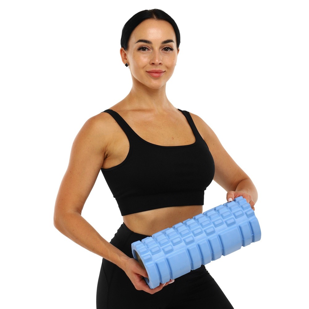 Форма роллера цилиндрическая, с длиной 32 см и диаметром 13 см, что делает его удобным для применения на различных участках тела, включая спину, ноги и руки. По всей поверхности ролика расположены кубики разного размера, которые создают особую текстуру для эффективного массажа. Они оказывают разнообразные уровни давления и воздействия, что позволяет настраивать массаж в зависимости от потребностей и предпочтений.
