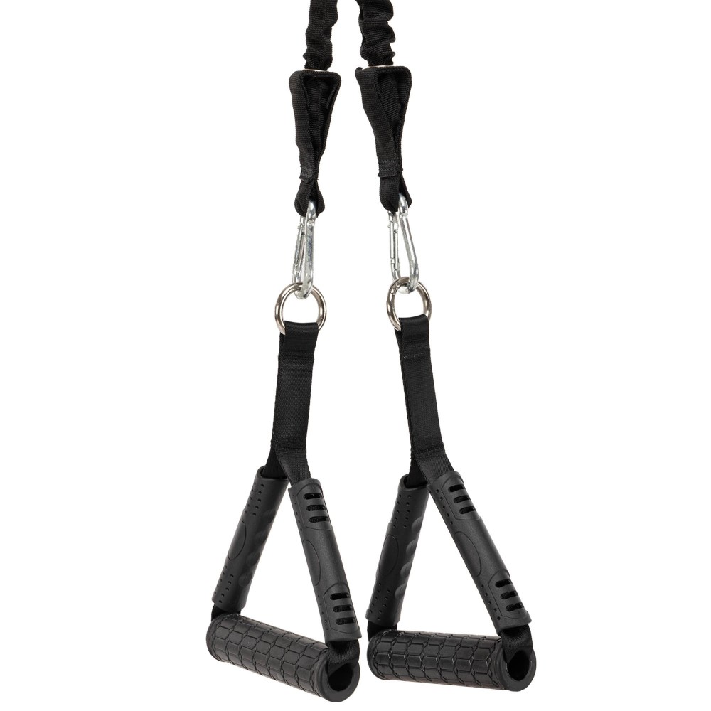 - Совместимы с блочными тренажёрами, эспандерами и резинками.
