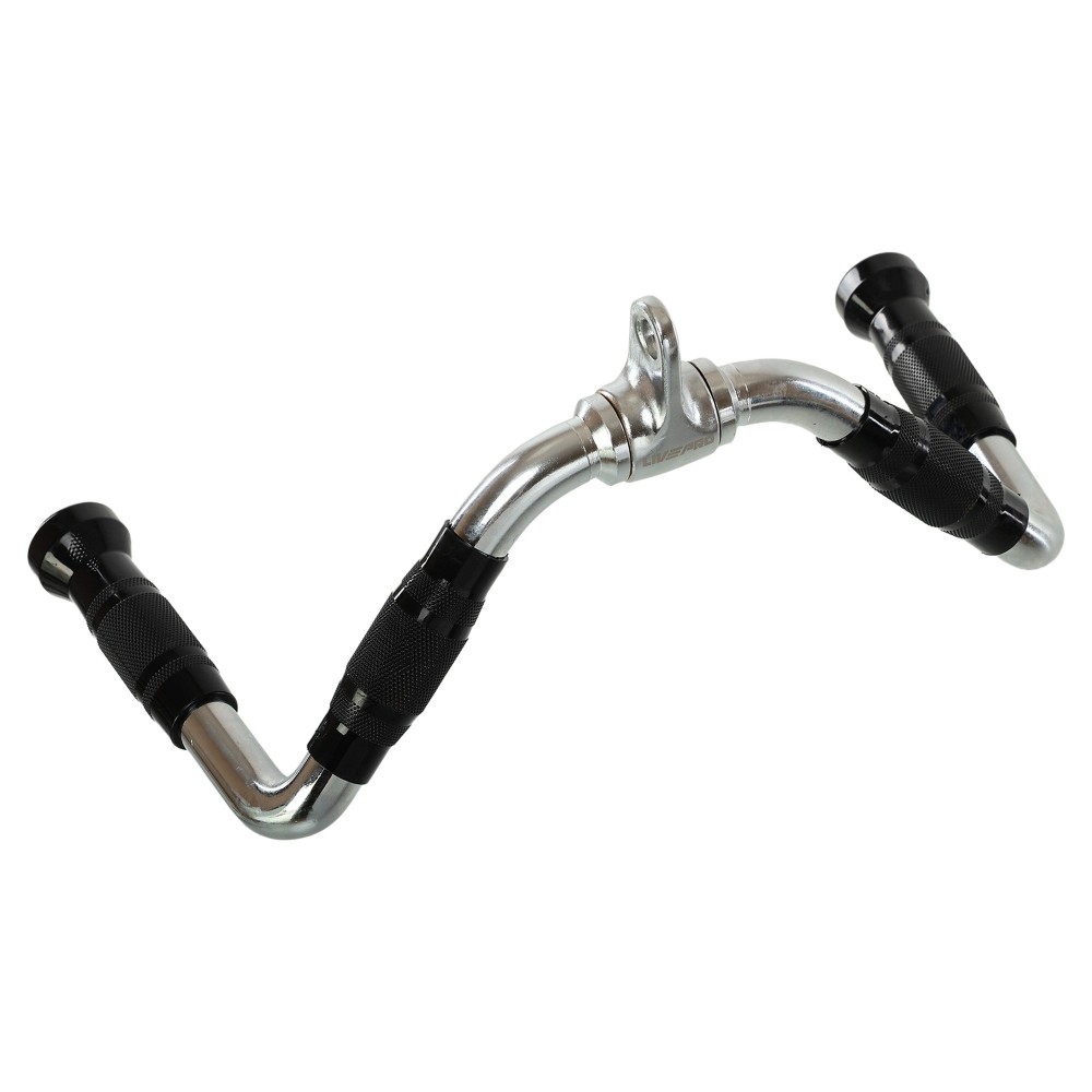 L-образная ручка для блочного тренажера - это универсальный аксессуар, который позволит выполнять различные упражнения на трицепс. Рукоятка изготовлена из хромированной стали наивысшего качества. Хромирование позволяет избежать образования коррозии и улучшить внешний вид изделия.