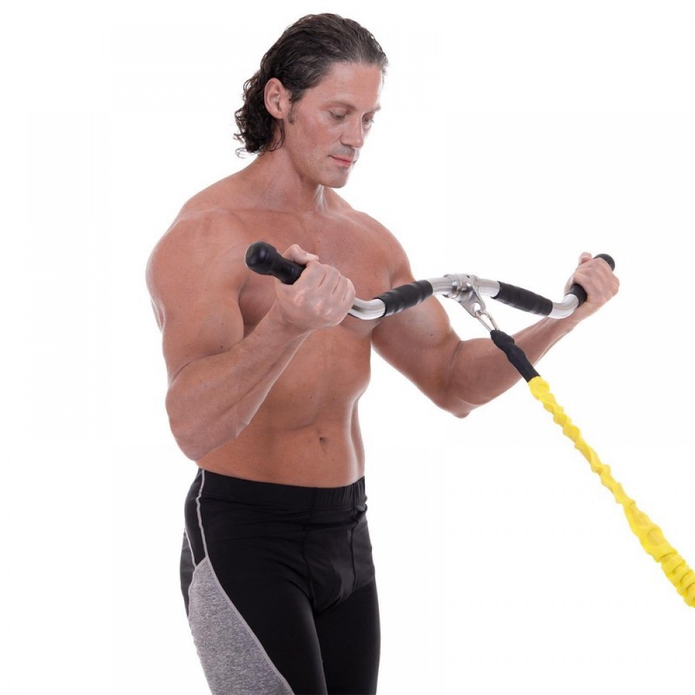 К тросу тренажёра рукоять присоединяется с помощью стального подвеса, который свободно вращается, обеспечивая плавное выполнение упражнения. Диаметр проушины на подвесе рассчитан на стандартные карабины (крюки), используемые в тренажёрах.