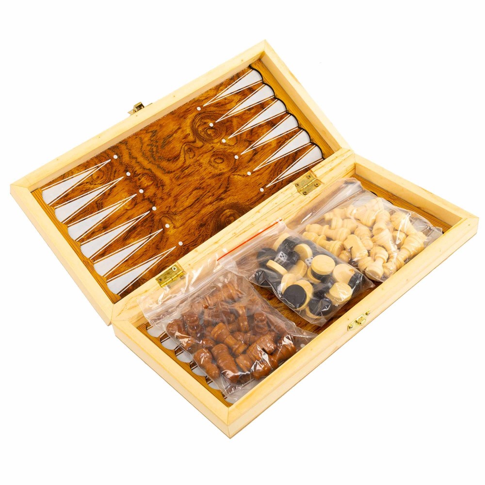 Шахматы шашки нарды 3 в 1 набор настольных игр деревянные SPRINTER IG-9024 размер 24см x 24м