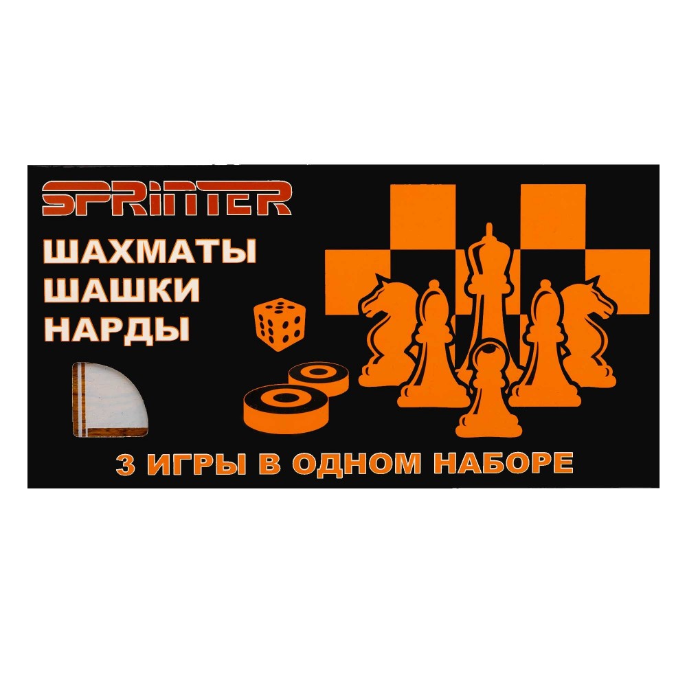 Шахматы, шашки, нарды, 3, 1, набор, настольных, игр, деревянные, SPRINTER, IG-9024, размер, 24см, x, 24м