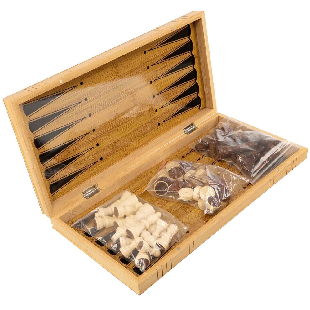 Шахматы, шашки, нарды, 3, 1, набор, настольных, игр, бамбука, SP-Sport, A3140, размер, 39x39см