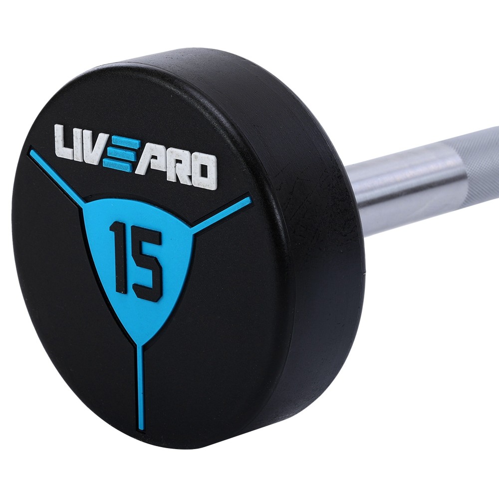 Штанга, неразборная, фиксированным, весом, прямая, полиуретановая, LiveUp, LP8010-15, длина-89, 2см, 15кг, черный-синий