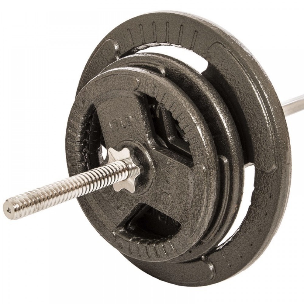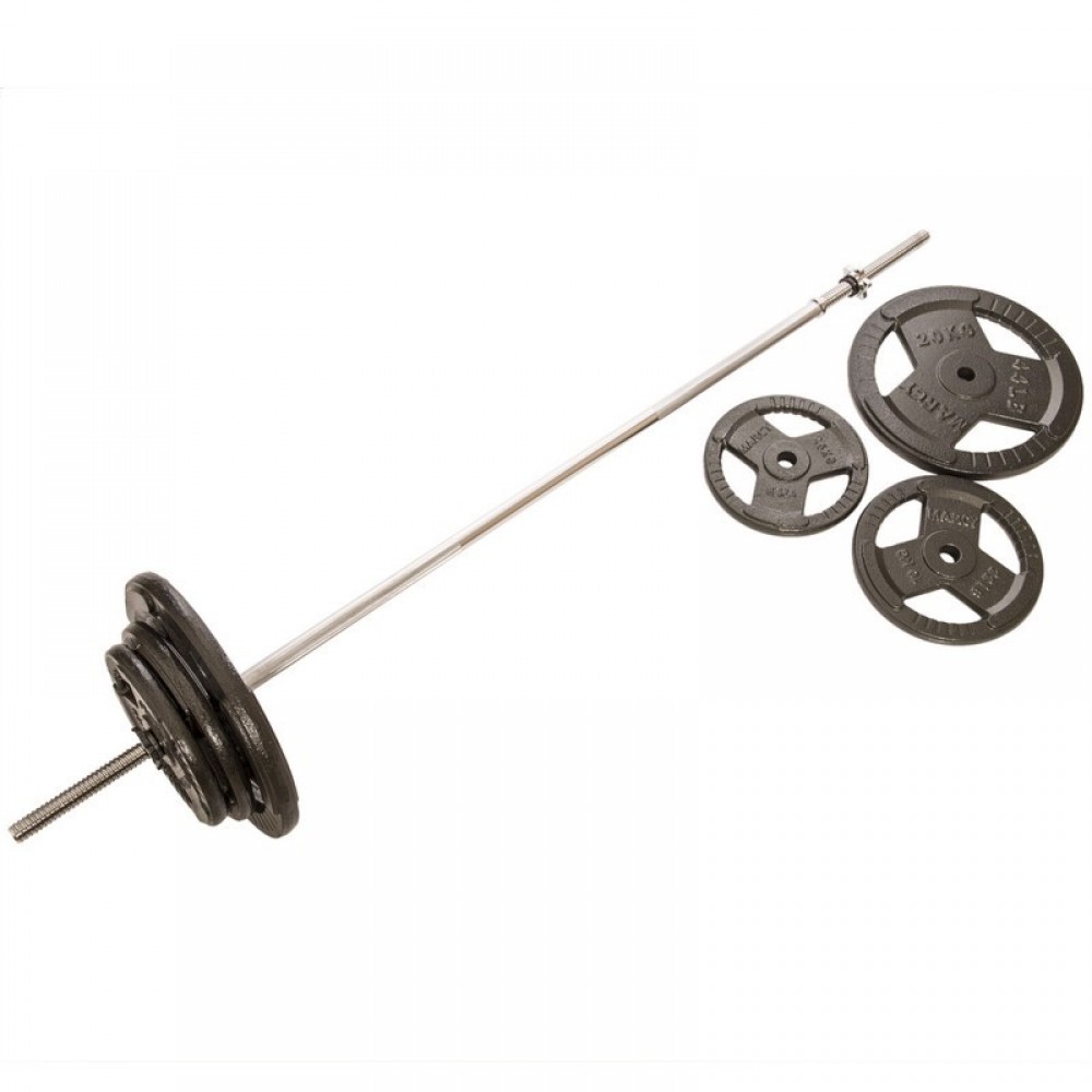 Штанга прямая со стальными блинами SHUANG CAI SPORTS TA-1139-83RSTAL длина-1,8м 28мм 83кг графитовый-серый