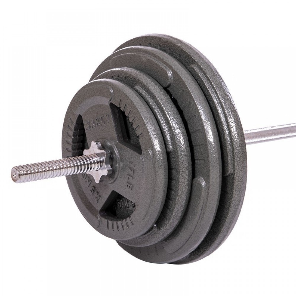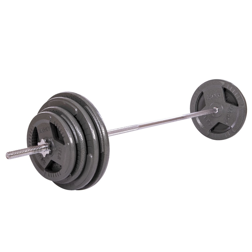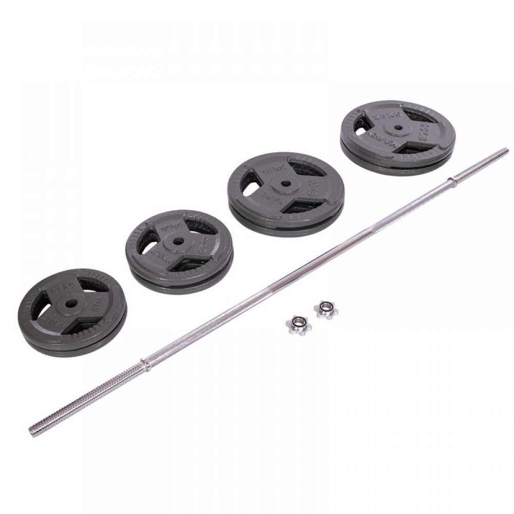 Штанга прямая со стальными блинами SP-Sport TA-2431-115 длина-1,8м 28мм 115кг графитовый-серый