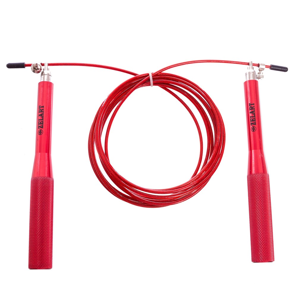 Скакалка скоростная Кроссфит с подшипником и стальным тросом с алюминиевыми ручками Zelart FI-5100 2,75м Красный