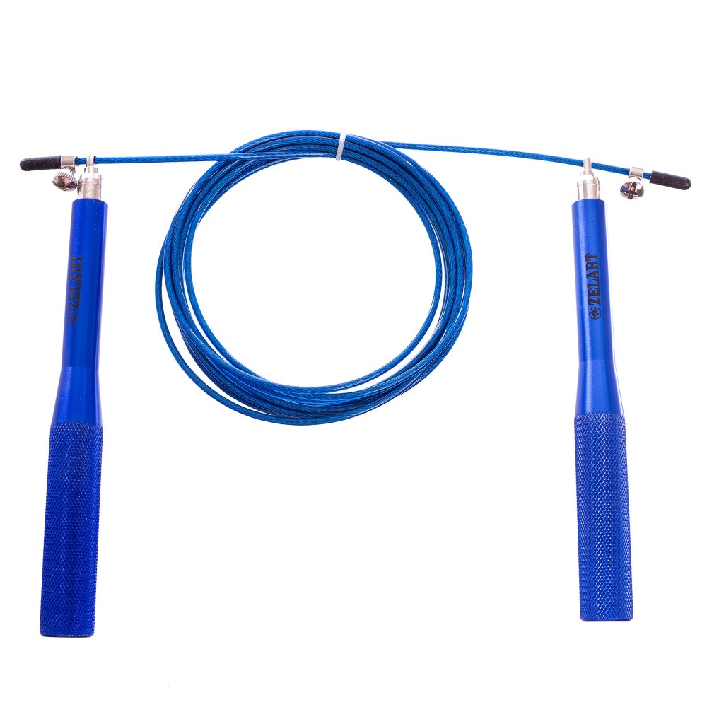 Скакалка скоростная Кроссфит с подшипником и стальным тросом с алюминиевыми ручками Zelart FI-5100 2,75м Синий