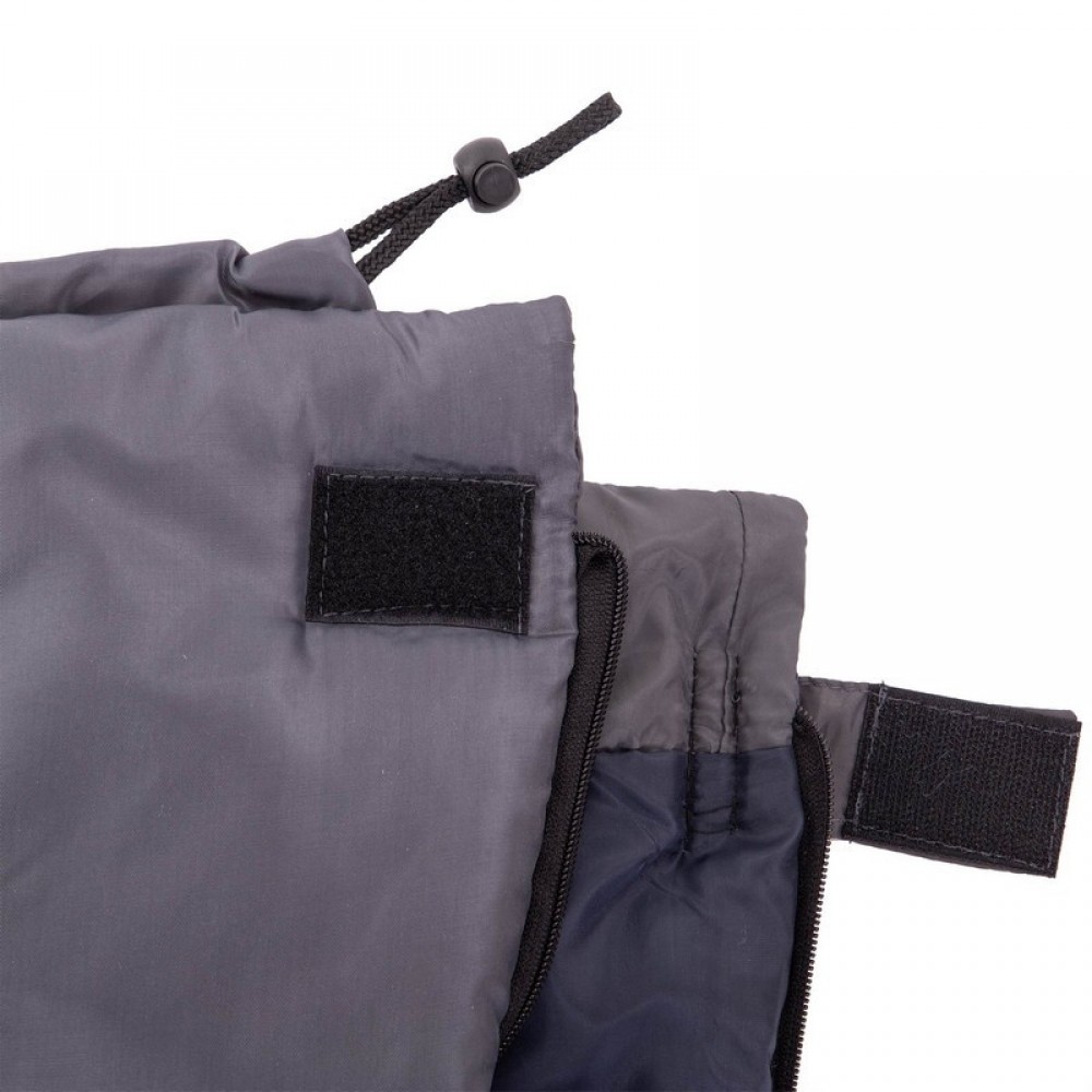 Капюшон регулируется с помощью шнурка. Спальный мешок застегивается на молнию. Он изготовлен в форме конверта.