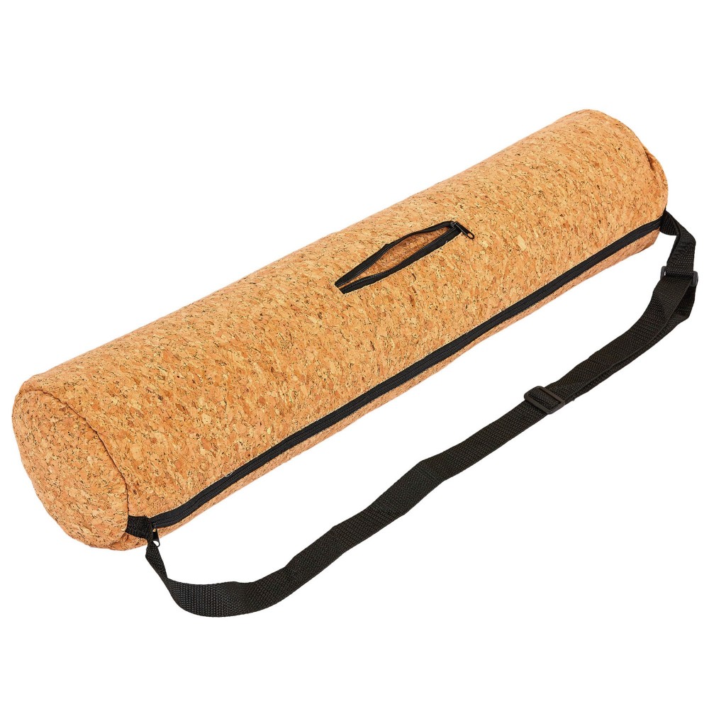 Удобная и стильная сумка для йога коврика, при создании которого был использован экологически чистый материал - пробковое дерево.