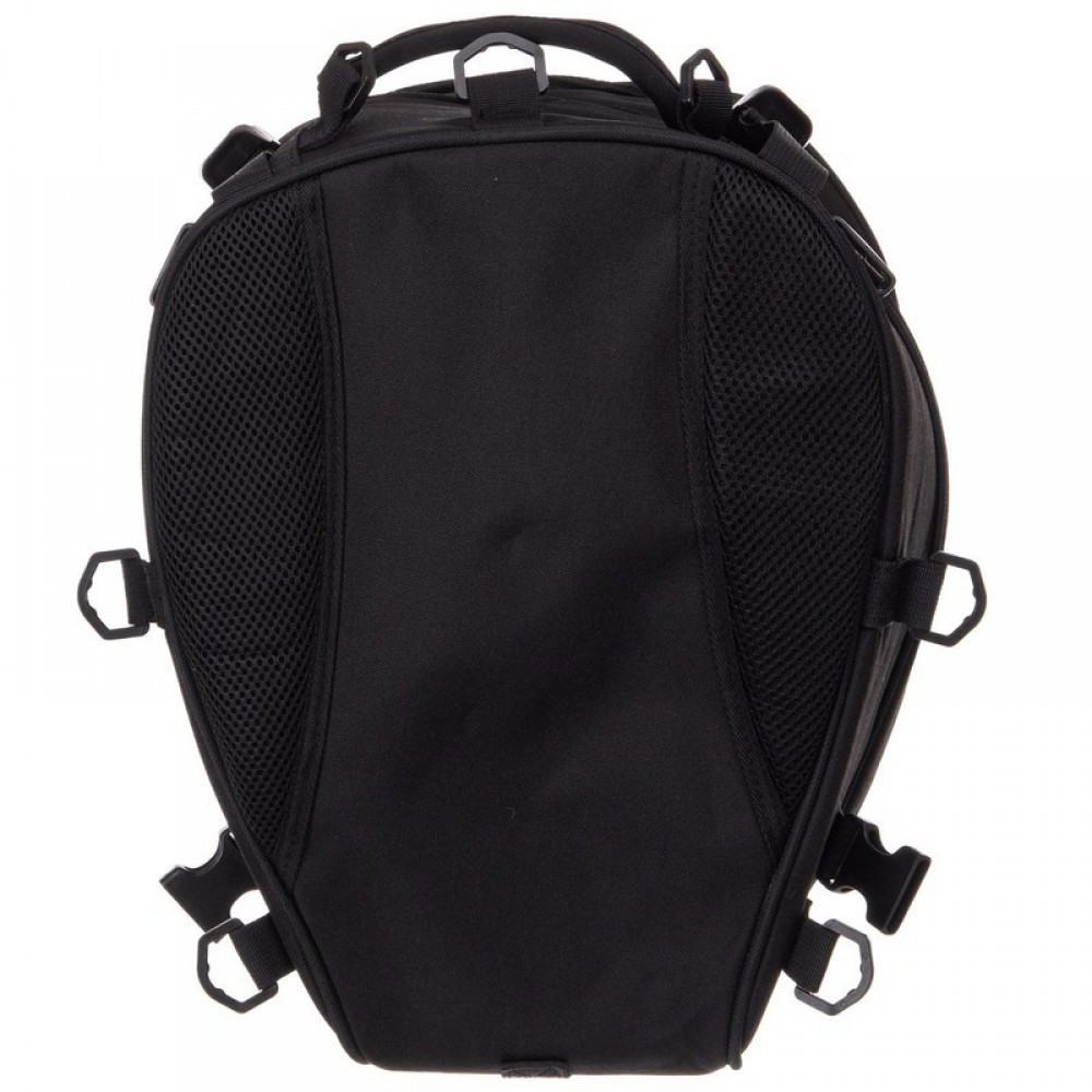 Особенностью данной сумки является то, что она легко трансформируется в рюкзак, который можно переносить на плечах. Для этого в сумке предусмотрены регулируемые сетчатые лямки. Также в сумке предусмотрено несколько ремней, которые позволяют регулировать её объём. Зафиксировать сумку на баке позволяет магнитное крепление и специальные ремни. Жёсткий каркас сумки позволяет сохранять ей форму в загруженном виде. Основное отделение содержит ремни для фиксации груза в одном положении. Помимо него в сумке также имеется маленький карман для небольших личных вещей.