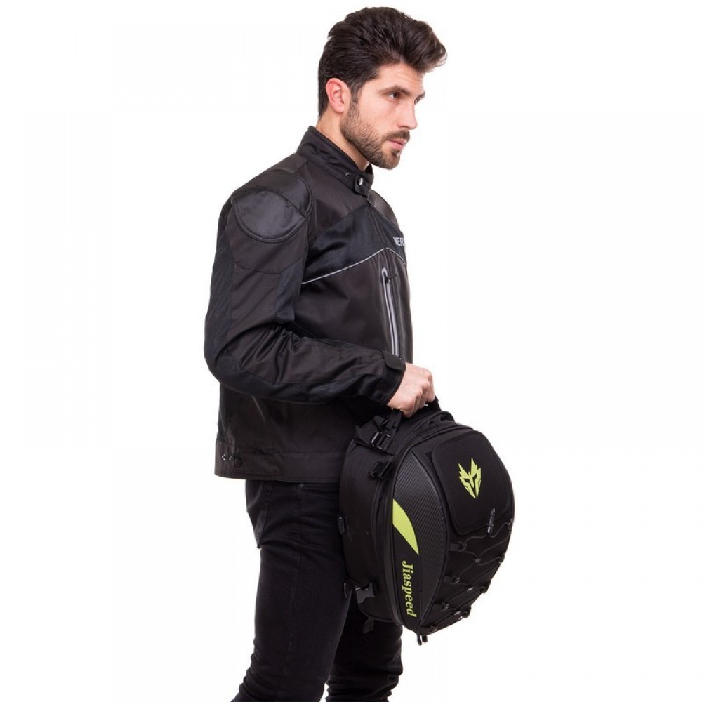 JIASPEED B185 — это вместительная мотосумка с объёмом 29 л. Сумка изготовлена из нейлона и полиэстера, комплектуется дождевиком, который позволяет защитить содержимое от намокания в любую погоду.