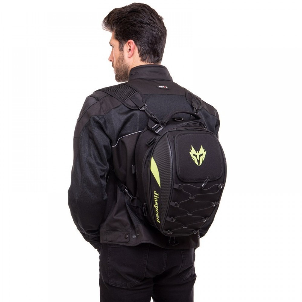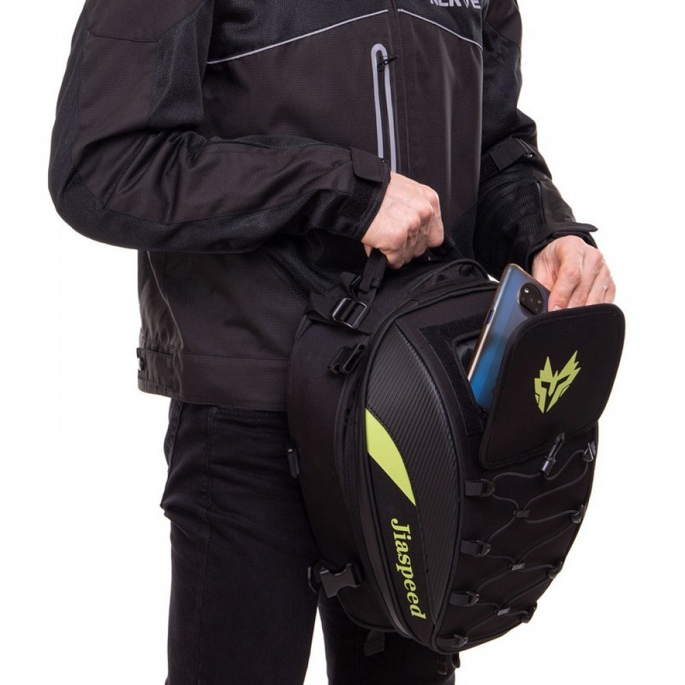 JIASPEED B185 — это вместительная мотосумка с объёмом 29 л. Сумка изготовлена из нейлона и полиэстера, комплектуется дождевиком, который позволяет защитить содержимое от намокания в любую погоду.