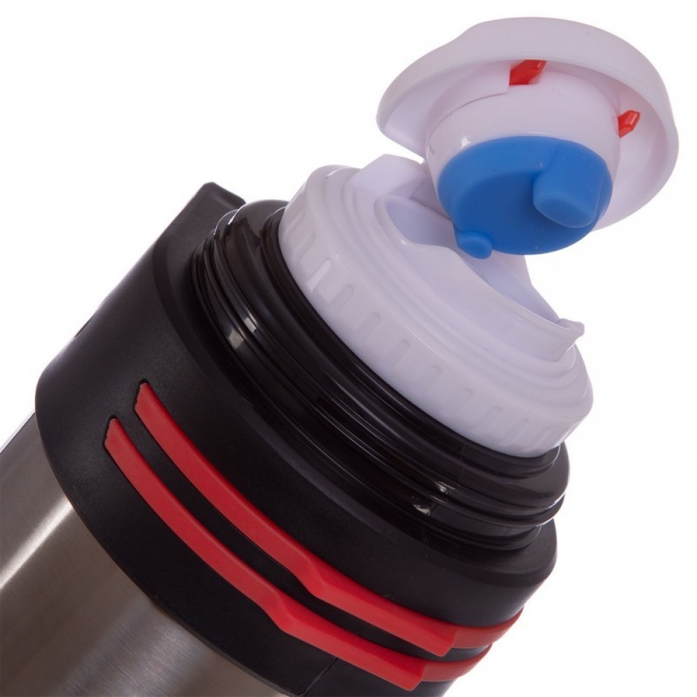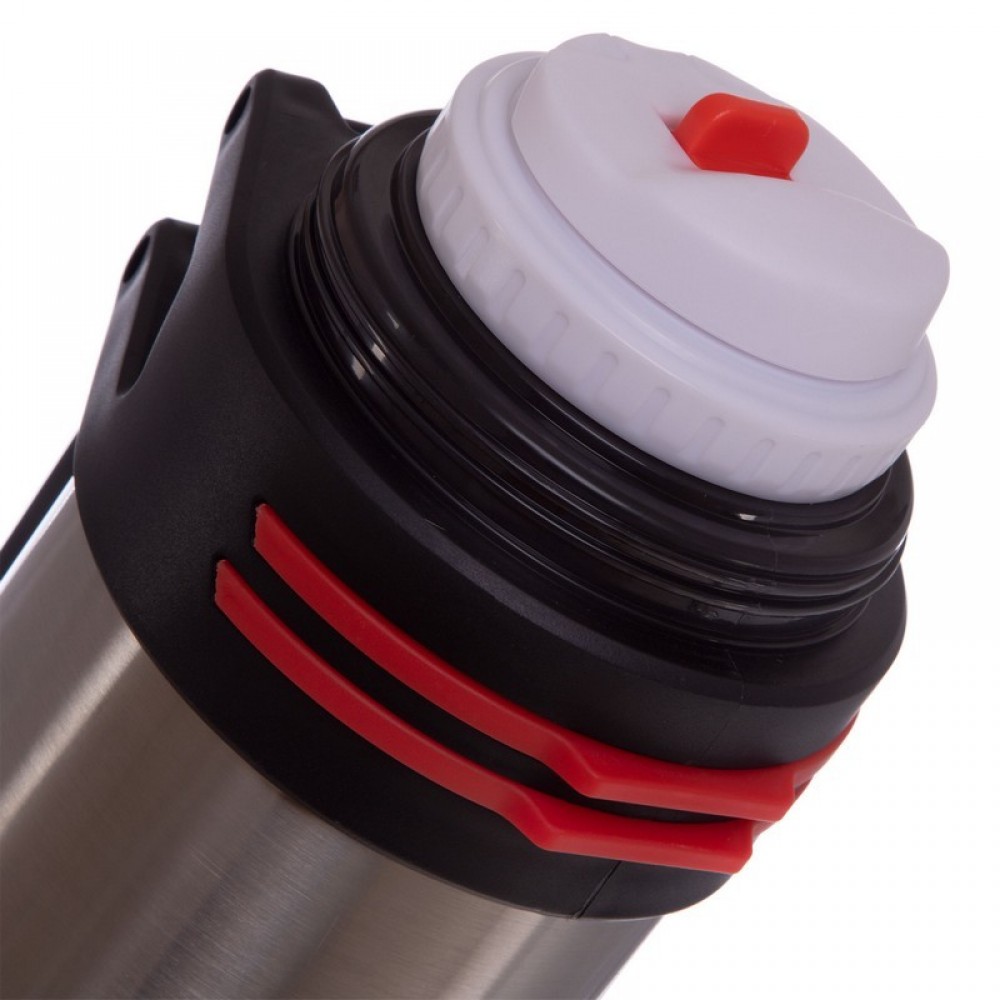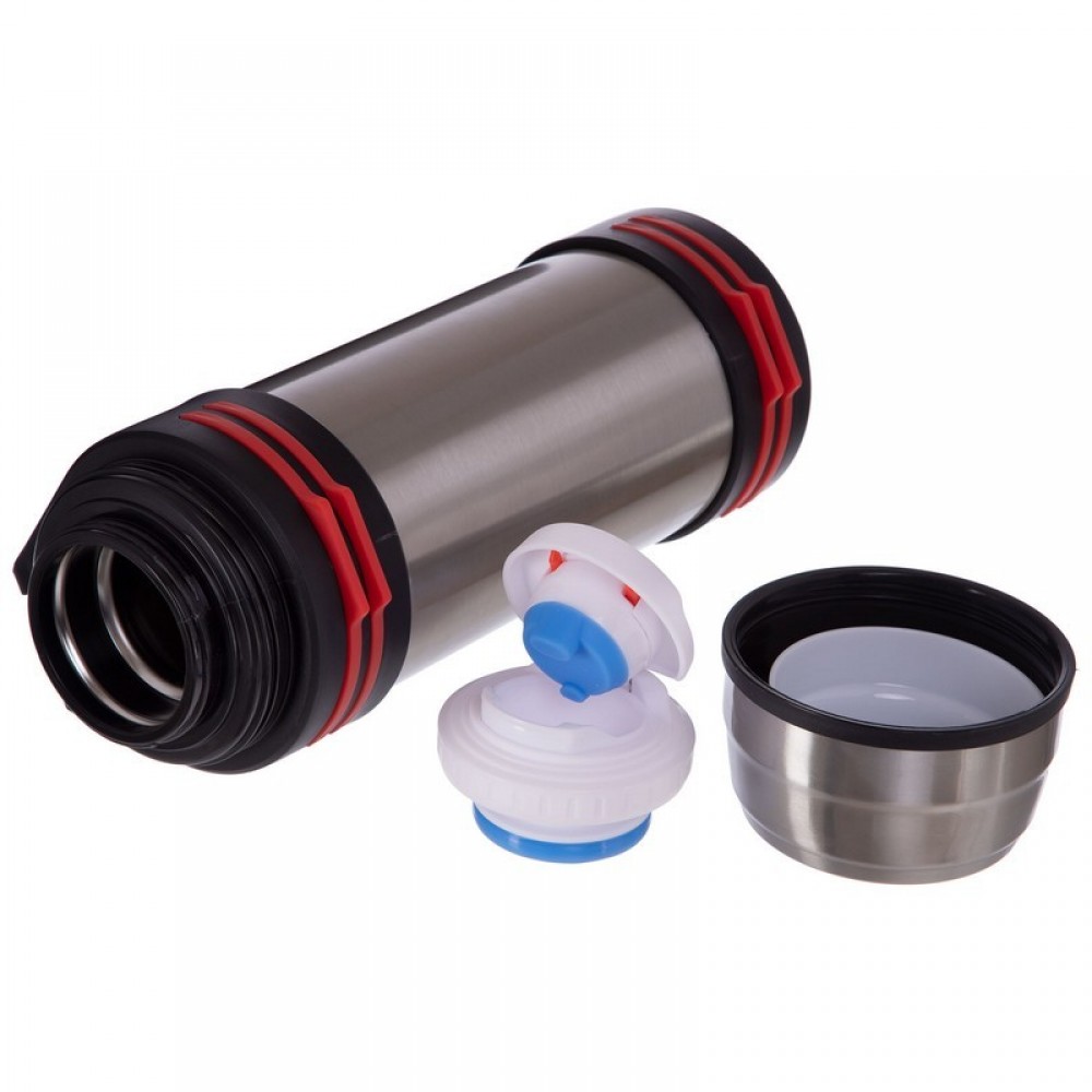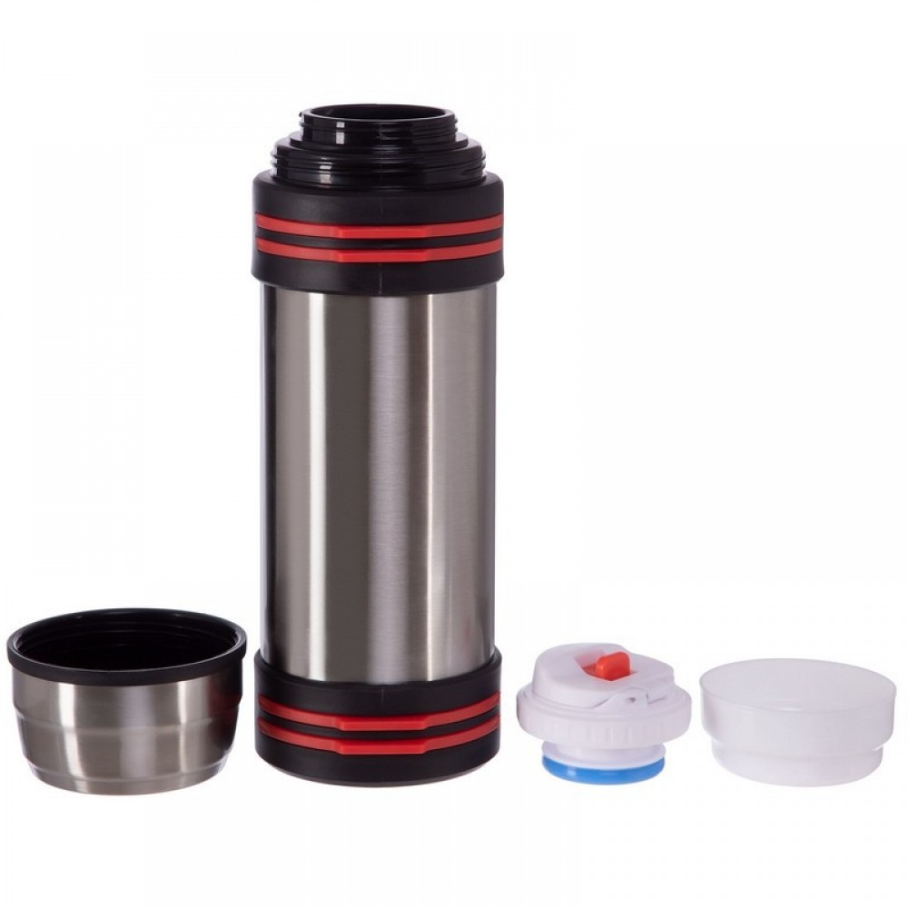 Термос состоит из двустенного корпуса и крышки, которую можно использовать как чашку для питья. Для их изготовления используют пищевую нержавеющую сталь, безопасную для здоровья и невосприимчивую к запахам. Термоизоляцию обеспечивает пластиковая пробка с резьбой, которая наряду с двойными стенками корпуса позволяет поддерживать температуру содержимого на протяжении длительного времени. Клапан в пробке позволяет быстро налить напиток, без необходимости отвинчивать пробку, не нарушая при этом герметичность. Чтобы случайно не уронить термос, к его корпусу прикреплён ремешок-ручка.