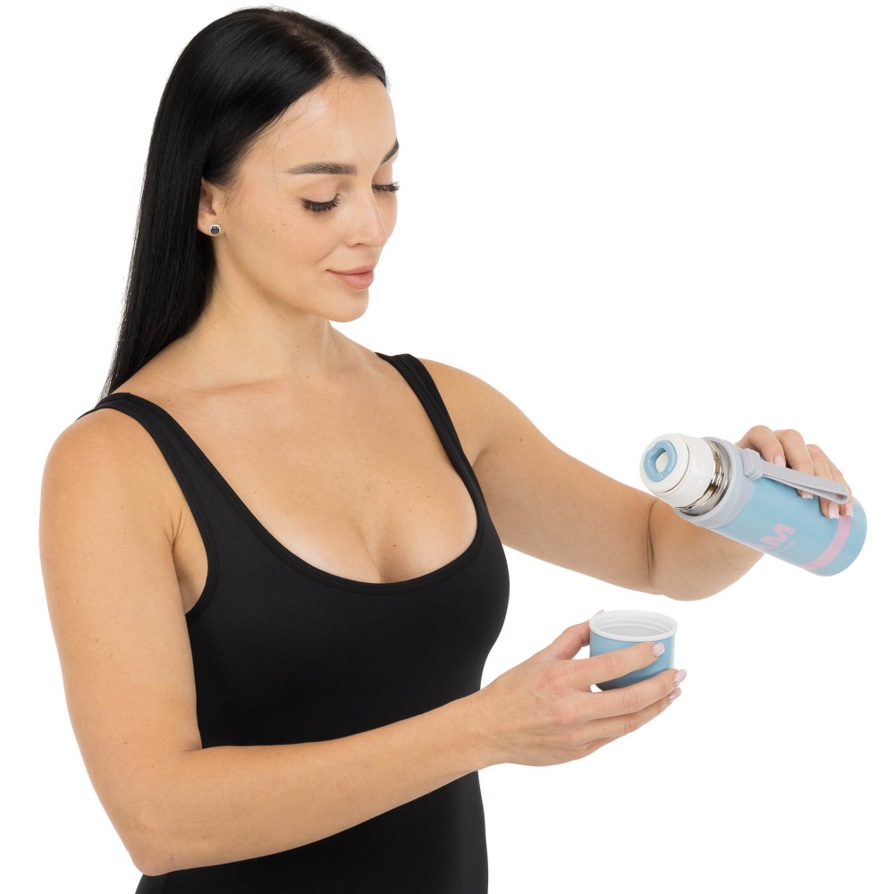 Компактный стальной термос WE ARE от SP-Sport легко открывается при помощи одной руки, имеет ударопрочный корпус и приятное, оригинальное оформление. Он изготовлен из нержавеющей стали – гипоаллергенного материала, который не влияет на вкус напитков и не выделяет токсинов при нагревании. Благодаря вакуумной изоляции напиток сохраняет свою температуру до 12 часов. Обеспечивает герметичность винтовая пробка с силиконовым уплотнителем, доступ к которой закрывает внешняя крышка, предназначенная для питья. Конструкция сохраняет вкус, запах и температуру напитка, гарантируя гигиеничность и удобство использования.