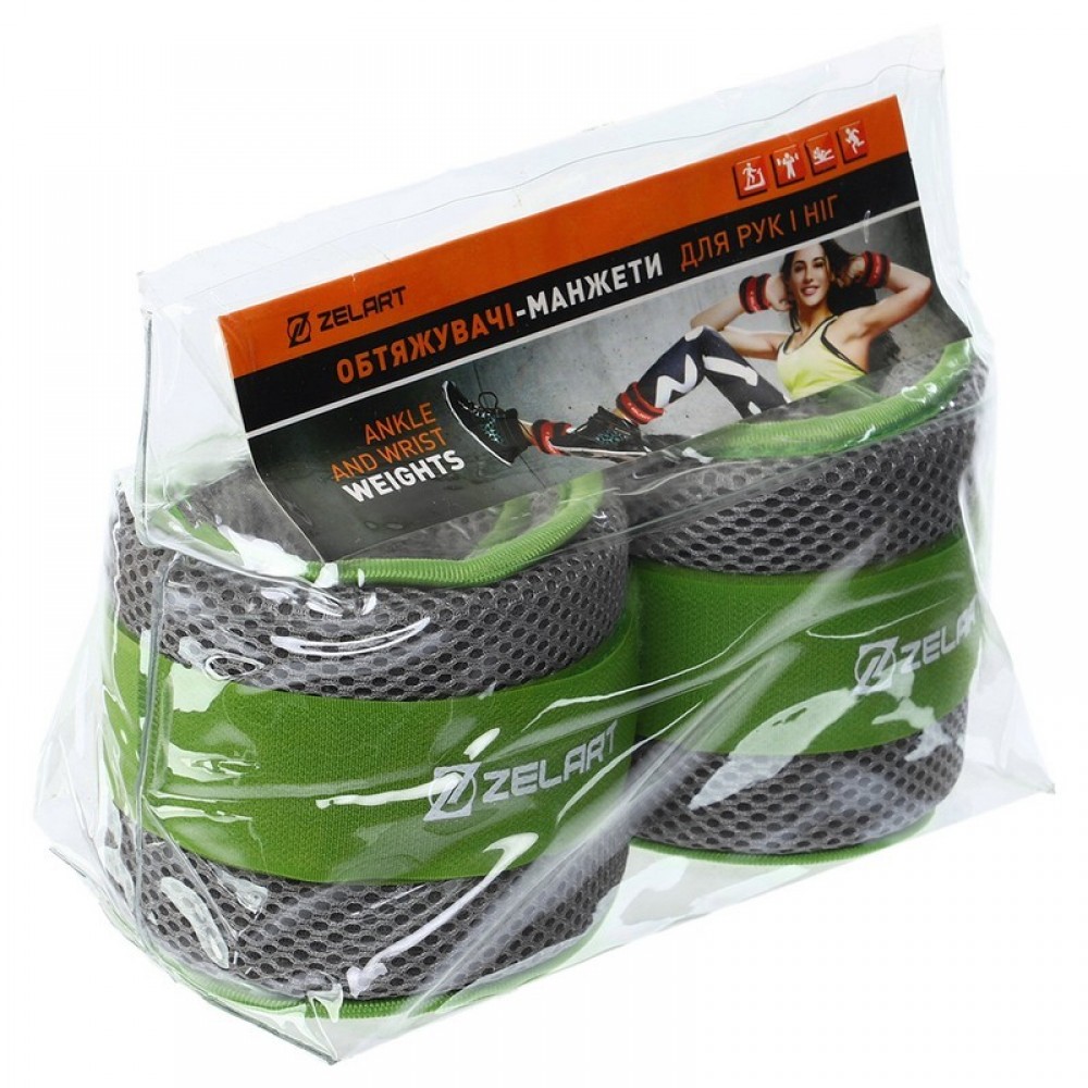 Утяжелители-манжеты, водонепроницаемые, Zelart, FI-7210-2, 2x1кг, Салатовый-серый