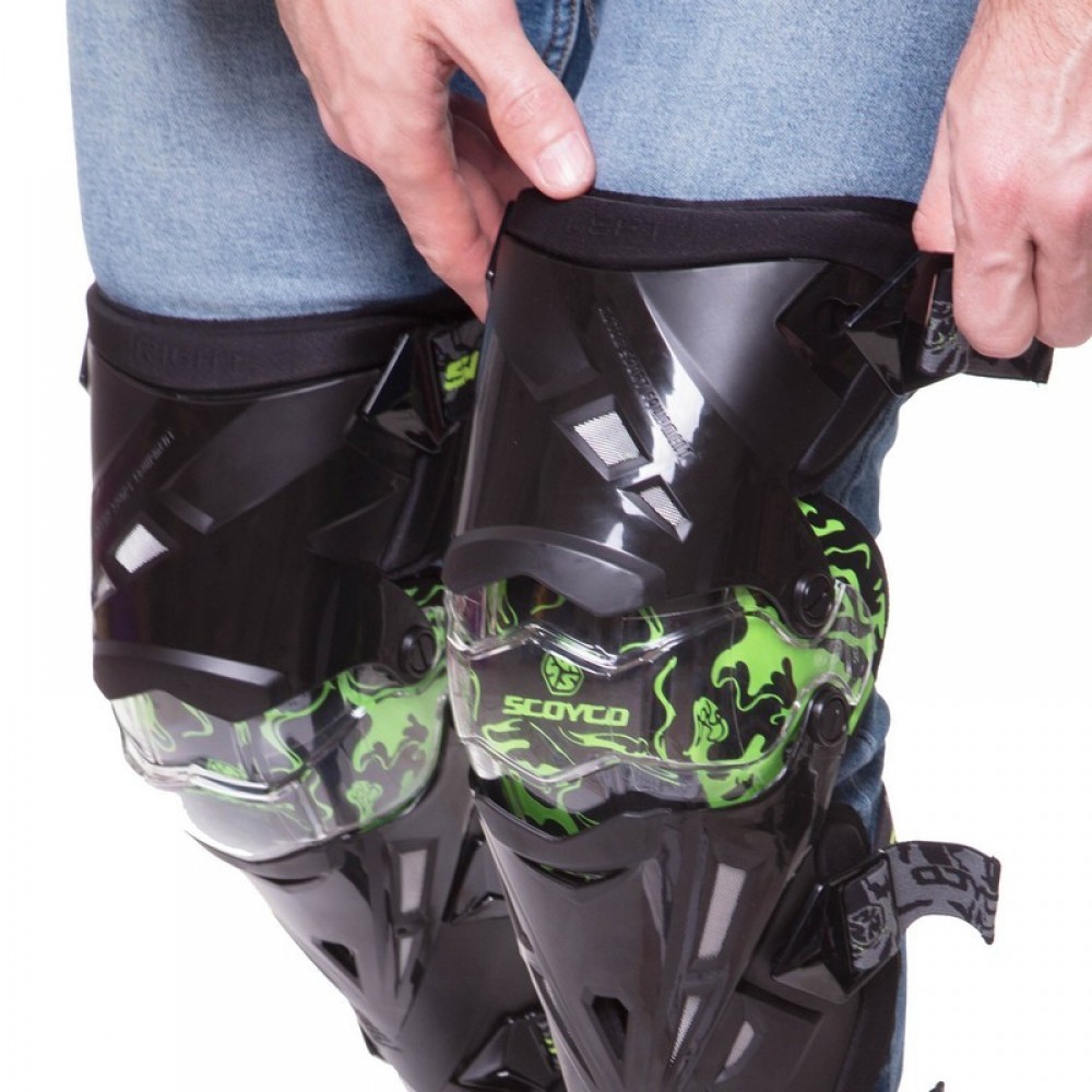 Защита колена и голени SCOYCO K12 2шт Черный-салатовый