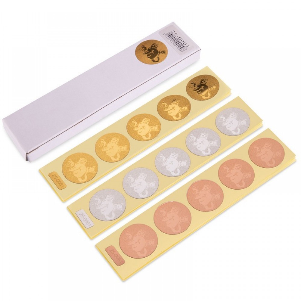 Жетон-наклейка на медаль – важный атрибут для награждения участников спортивных соревнований. Эти наклейки доступны в трех вариантах цветов: золото, серебро и бронза. Жетоны можно использовать для награждения победителей и призеров соревнований.