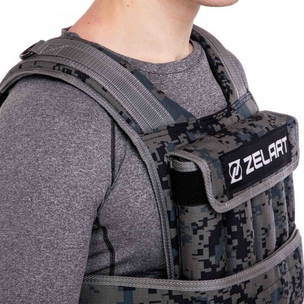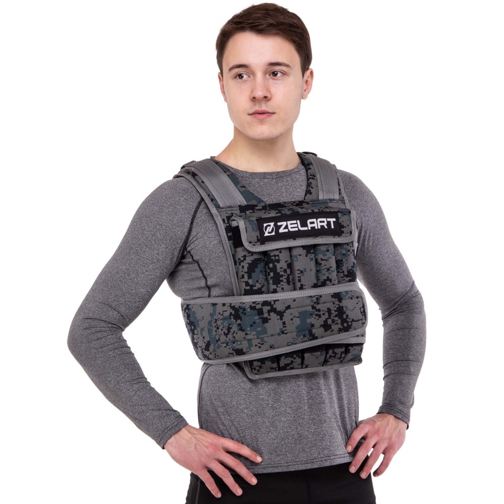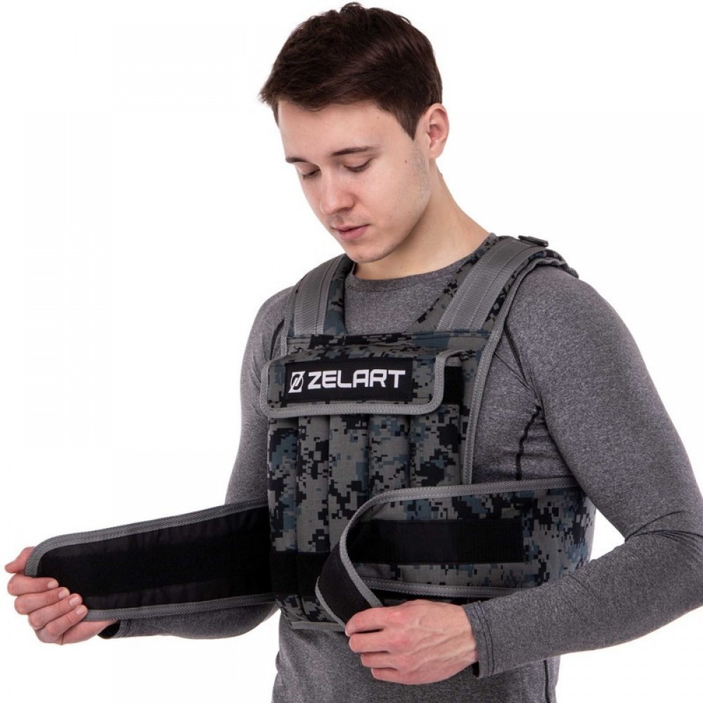 Жилет, утяжелитель, регулировкой, веса, Zelart, TA-7806-20, вес-20кг, камуфляж
