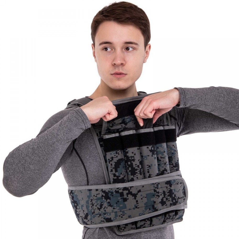 Жилет утяжелитель с регулировкой веса Zelart TA-7806-20 вес-20кг камуфляж